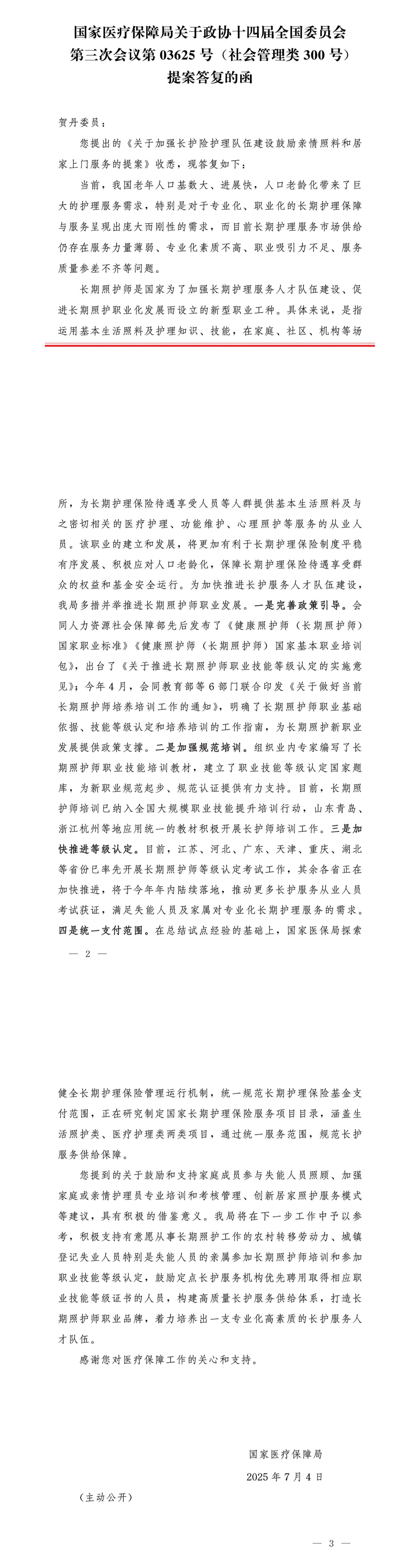 國家醫(yī)療保障局關(guān)于政協(xié)十四屆全國委員會第三次會議第03625號(社會管理類300號)提案答復(fù)的函