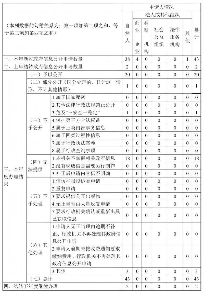 2025年,我局嚴格執(zhí)行《條例》規(guī)定,認真開展政府信息公開工作。一是認真落實信息公開有關要求。嚴格執(zhí)行《國家醫(yī)保局政府信息公開暫行辦法》(醫(yī)保發(fā)〔2019〕72號)。二是依法主動公開政府信息,按照《條例》第二十條的規(guī)定,主動公開我局制定的部門規(guī)章、規(guī)范性文件、對人大建議和政協(xié)提案的答復等政府信息49件,堅持做到“政策文件類政府信息與政策解讀材料同步公開”,不斷提升政府信息公開工作的質(zhì)量。三是認真做好依申請公開。全年收到政府信息公開申請43件,加上上年末結轉2件,共計45件。其中43件已辦結,2件于2025年12月底收到,已按照規(guī)定時限結轉下年度繼續(xù)辦理。四是做好政府信息公開平臺建設。在我局官方網(wǎng)站首頁顯著位置設立“信息公開”專欄,便于公眾查詢我局政府信息公開有關事項。